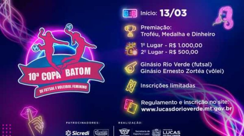 No mês das mulheres, o esporte também realiza um evento dedicado à classe feminina, a tradicional Copa Batom de Futsal e Voleibol Feminino 2026, que chega a sua 10ª edição com três dias de competição e premiação em dinheiro.