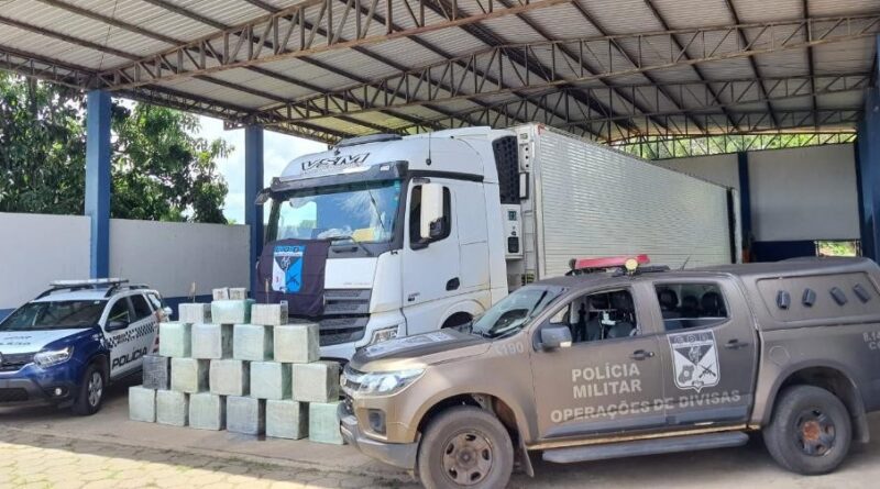 Ação integrada da Polícia Militar de MT e GO apreende 500 quilos de cocaína escondido em caminhão frigorífico