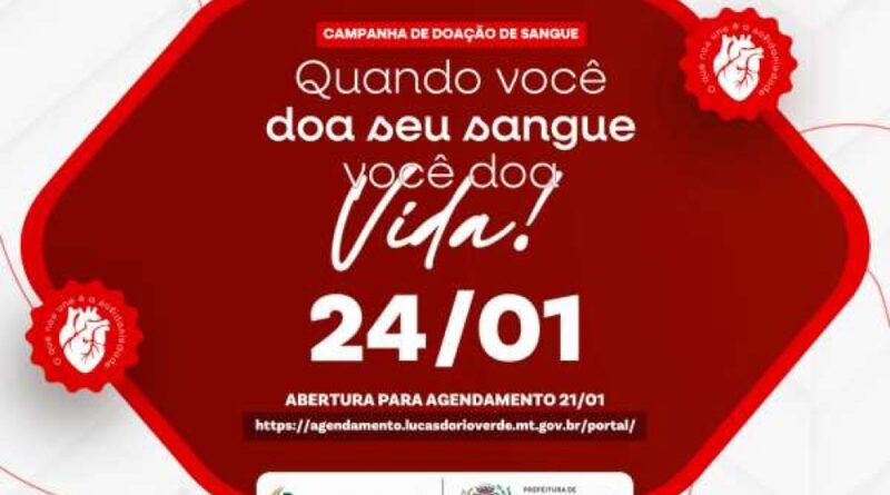 Começa nesta quinta-feira (22), o agendamento para a Campanha de Doação de Sangue. A iniciativa é da Secretaria Municipal de Saúde de Lucas do Rio Verde e Banco de Sangue de Sorriso.