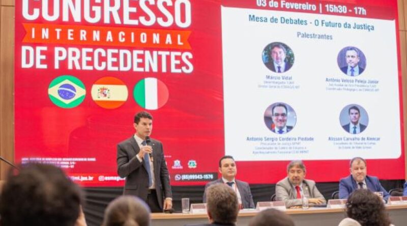 O conselheiro Alisson Alencar participou, na tarde desta terça-feira (3), do Congresso Internacional de Precedentes, realizado pelo Tribunal de Justiça de Mato Grosso (TJMT), por meio da Escola Superior da Magistratura Desembargador João Antônio Neto (Esmagis-MT). O evento reuniu juristas do Brasil, Itália e Espanha para debater os rumos dos precedentes judiciais e os impactos da inteligência artificial no sistema de Justiça contemporâneo.