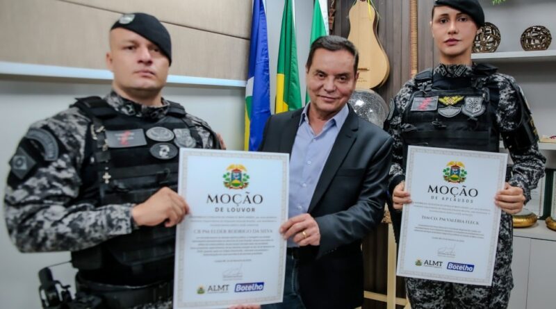 A Assembleia Legislativa de Mato Grosso (ALMT) realizou, nesta segunda-feira (9), a entrega de duas homenagens em reconhecimento ao trabalho de policiais militares que se destacaram na defesa da vida e na segurança da população. De autoria do deputado estadual Eduardo Botelho (União), foram concedidas a Moção de Louvor nº 268/2026 e a Moção de Aplauso nº 267/2026.