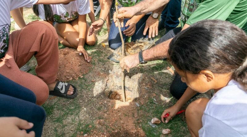Alunos de Cuiabá plantam 259 mudas de árvores na Orla do Porto