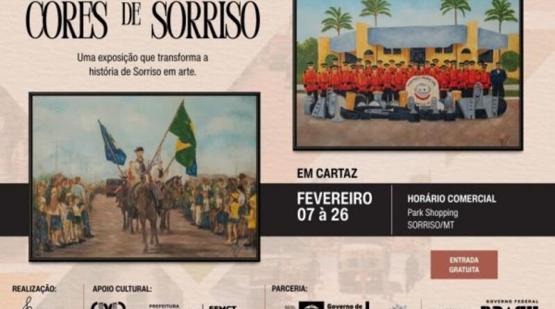 A trajetória de Sorriso, desde os primeiros registros até os dias atuais, ganha nova leitura artística na exposição “Cores de Sorriso”, aberta ao público no Shopping Sorriso. A mostra começou no sábado (7) e segue até 28 de fevereiro de 2026, com entrada gratuita.