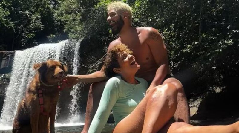 Bárbara Reis aproveitou uma pausa nas gravações de Três Graças, novela em que vive Lena, para viajar com o marido, Raphael Najan, para um destino distante do litoral.