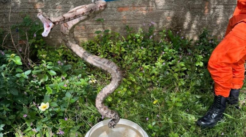 O Corpo de Bombeiros Militar de Mato Grosso (CBMMT) resgatou na manhã de domingo (25.1) uma cobra jiboia que estava no lote de uma residência em Água Boa (639 km de Cuiabá).