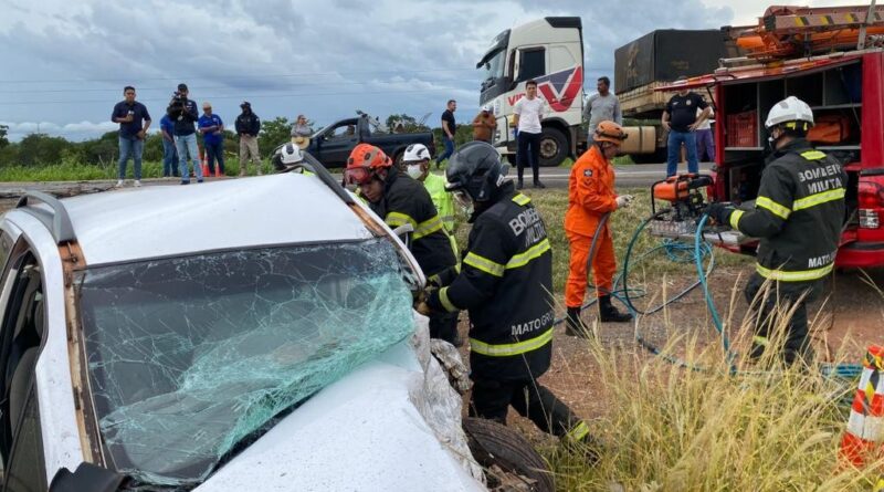 O Corpo de Bombeiros Militar de Mato Grosso (CBMMT) realizou, na manhã desta sexta-feira (20.2), o desencarceramento de duas vítimas fatais que ficaram presa às ferragens após um acidente de trânsito na Rodovia dos Imigrantes, aproximadamente 5 km antes do Trevo do Lagarto, em Várzea Grande.