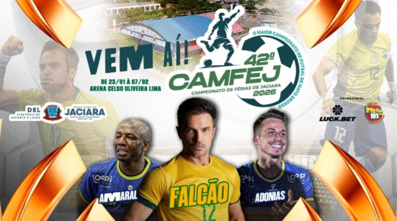 Jaciara já vive o clima de um dos maiores eventos esportivos do estado. A cidade se prepara para a 42ª edição do Campeonato de Férias de Jaciara (CAMFEJ 2026), que promete entrar para a história com recorde de premiações, a estreia da moderna Arena Celso Oliveira Lima, o “Celsão”, e a presença ilustre do maior nome do futsal brasileiro: Falcão.
