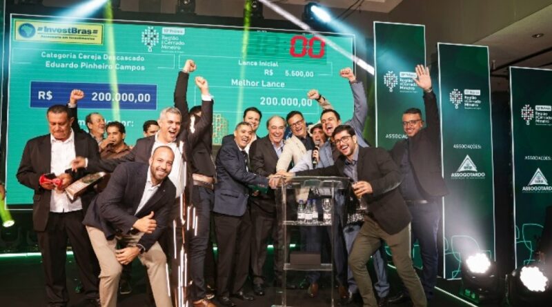 O Leilão Solidário, realizado presencialmente em Uberlândia, movimentou R$ 562 mil, com média de R$ 62,4 mil por saca. A saca campeã da categoria Cereja Descascado, produzida por Eduardo Pinheiro Campos, da Fazenda Dona Nenem, em Presidente Olegário, alcançou R$ 200 mil — valor recorde em leilões nacionais de café.