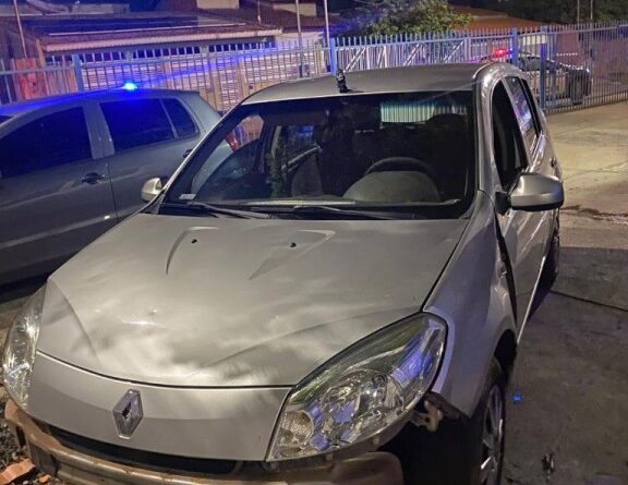 Os militares iniciaram acompanhamento aos dois veículos, que seguiram pelas ruas do bairro, desrespeitando as ordens de parada e sinais de trânsito. Após alguns metros de acompanhamento, o carro perdeu o controle e colidiu com um barranco de terra, enquanto a moto continuou a fuga.
