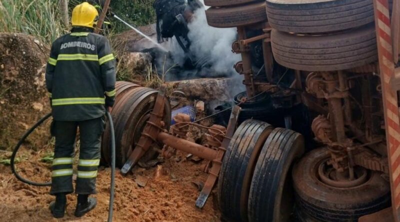 Corpo de Bombeiros combate incêndio em carreta que transportava correntes em rodovia