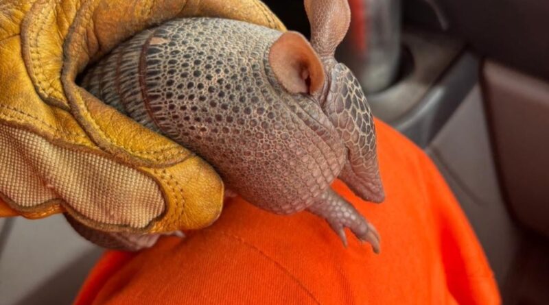 Após o resgate, o tatu-bola foi encaminhado a um veterinário credenciado pelo Estado.