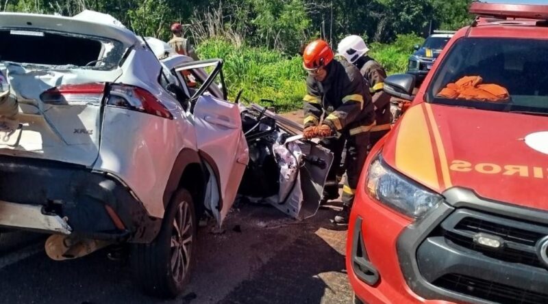 Corpo de Bombeiros realiza desencarceramento do corpo de duas vítimas que ficaram presas em ferragens após acidente na BR-070