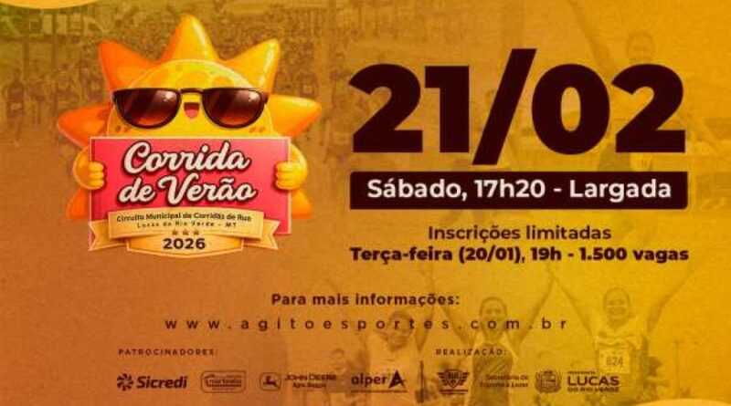 A temporada 2026 do Circuito Municipal de Corridas de Rua de Lucas do Rio Verde começa em fevereiro com a Corrida de Verão, primeira etapa do calendário esportivo do ano. A prova será realizada no dia 21 de fevereiro e contará com percurso de 5 km.