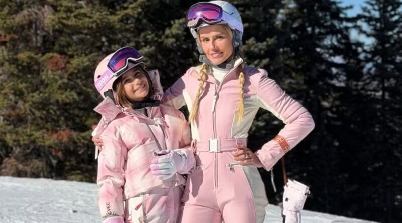 Longe do país, Deborah Secco aproveitam as baixas temperaturas no Hemisfério Norte e se aventurou em pistas de esqui na companhia da filha.