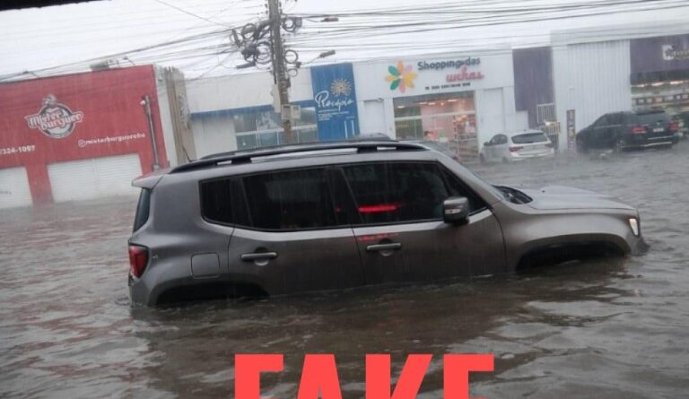 A Secretaria Municipal de Defesa Civil de Cuiabá esclarece que a imagem que circula nas redes sociais mostrando um veículo parcialmente submerso em uma via comercial da capital não corresponde a uma situação real. De acordo com comerciantes da região, o material se trata de uma montagem produzida por inteligência artificial, sem relação com a realidade local.