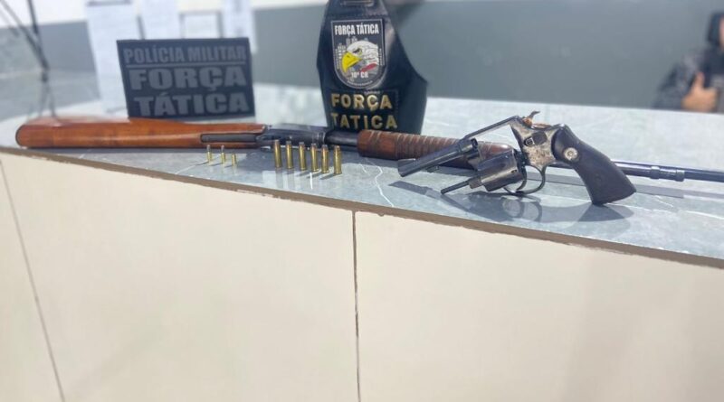 Os policiais também fizeram buscas no interior da residência do homem e encontraram duas armas de fogo, sendo um revólver de calibre .38 e um rifle de calibre 22 acompanhados de munições para os respectivos armamentos. O suspeito afirmou ser o proprietário dos objetos mas não apresentou documentação de porte.