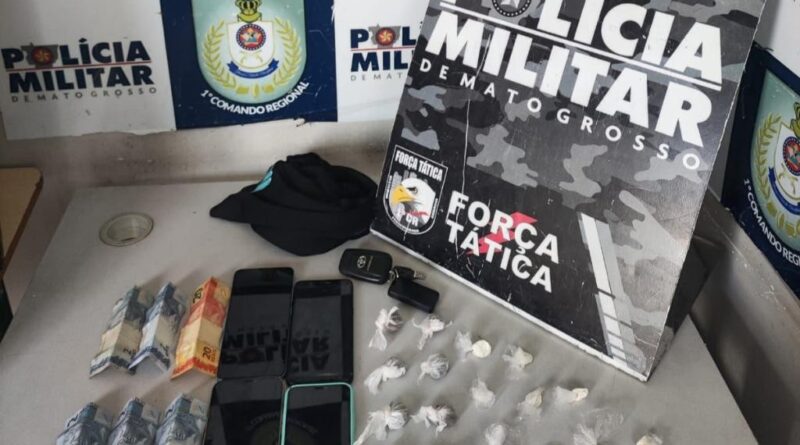 Policiais militares da Força Tática do 1º Comando Regional prenderam dois homens, de 19 e 20 anos, pelos crimes de tráfico ilícito de drogas e furto, na tarde deste domingo (18.1), em Cuiabá. Com os suspeitos, a PM apreendeu 10 porções de maconha e cocaína, além de recuperar um veículo Corolla furtado.
