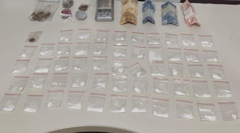 Após breve perseguição, o homem foi encontrado dentro de uma casa. Na verificação da sacola que ele transportava, que havia abandonado na pia da cozinha do imóvel, os policiais localizaram 53 porções de cocaína, uma balança de precisão pequena e quantia em dinheiro.