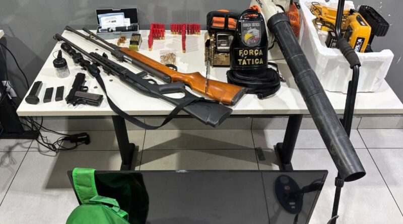 Força Tática prende homem e recupera armas e produtos roubados de chácara