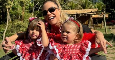 “Queria algo divertido e colorido, mas esse é só o primeiro look”, contou. “Para o palco, escolhi um estilista brasileiro, a Koya Brand, que eu amo. Nossa moda nacional está arrasando.”