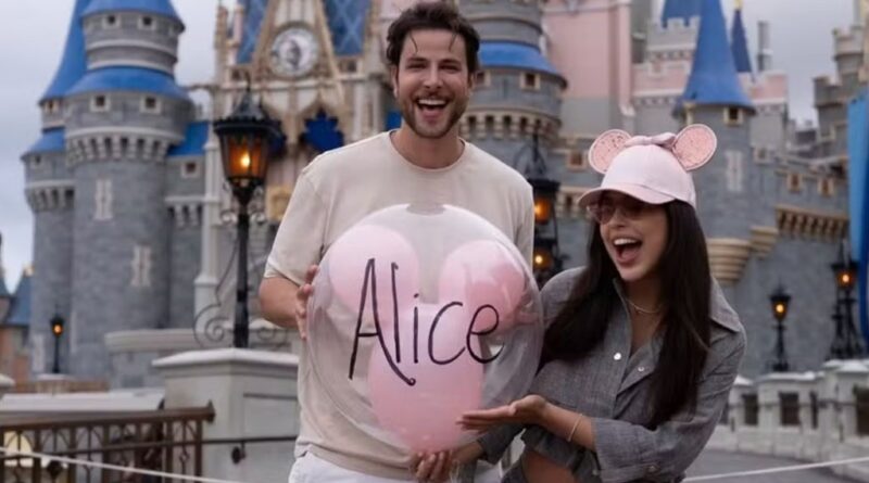 Nas imagens, o casal aparece de mãos dadas enquanto caminha por um dos parques da Walt Disney World Resort, em Orlando, nos Estados Unidos. “O nome da nossa princesa é Alice”, escreveram eles na legenda da publicação.