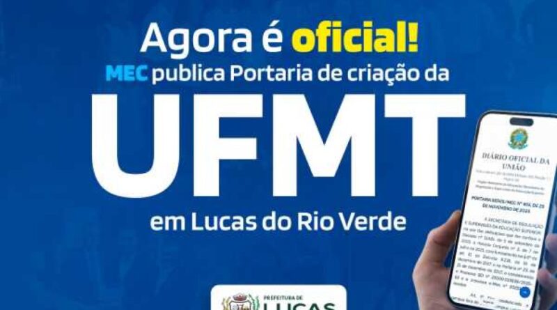 Na manhã desta quarta-feira (26), o Ministério da Educação (MEC) e a Secretaria de Regulação e Supervisão da Educação Superior (Seres) publicaram a Portaria nº 865 que oficializa a criação do Campus Fora de Sede da Universidade Federal de Mato Grosso (UFMT) em Lucas do Rio Verde. O ato simboliza a concretização de um sonho da sociedade luverdense e da gestão municipal, que trabalhou de forma contínua para viabilizar a implantação do centro de formação, pesquisa, tecnologia e inovação no município.