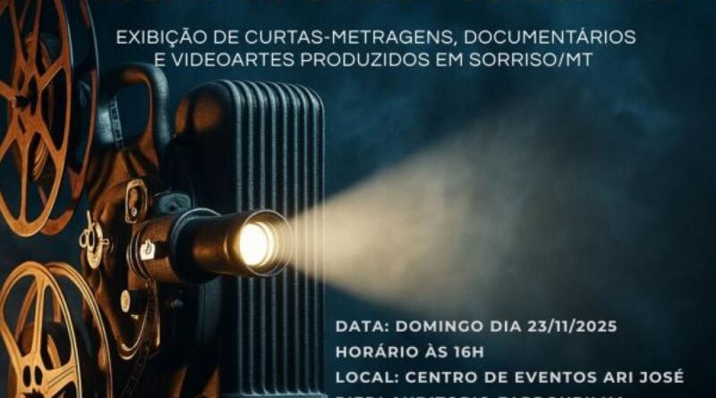 Sorriso recebe neste domingo (23), às 16h, a Mostra de Cinema Sorrisense, que reúne 11 produções realizadas por cineastas e produtoras da cidade. O evento, que será realizado no Auditório Farroupilha, no Centro de Eventos Ari José Riedi, tem entrada gratuita e busca aproximar a comunidade do audiovisual local por meio de obras e bate-papo com os realizadores.