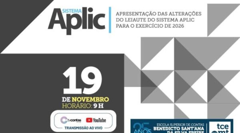O Tribunal de Contas de Mato Grosso (TCE-MT) apresenta, a partir das 9h desta quarta-feira (19), o novo leiaute do Sistema Aplic (Auditoria Pública Informatizada de Contas) para o exercício de 2026. A capacitação online será transmitida ao vivo pelo Canal do TCE-MT no YouTube e pela TV Contas (canal 30.2)