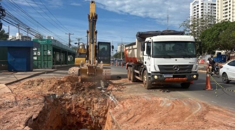 Na Avenida do CPA, continuará o afunilamento em frente ao Shopping Pantanal, onde são executadas escavações para implantação do novo sistema de drenagem. Por esse motivo, a faixa da direita permanece interditada.