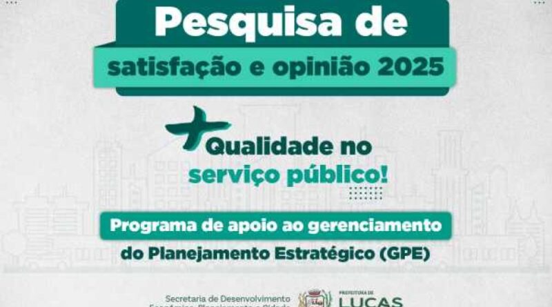 A Prefeitura de Lucas do Rio Verde reforça o convite à população para participar da pesquisa de opinião sobre os serviços públicos ofertados pela administração municipal, disponível desde 23 de dezembro de 2025 e aberta até 15 de janeiro de 2026, de forma on-line.