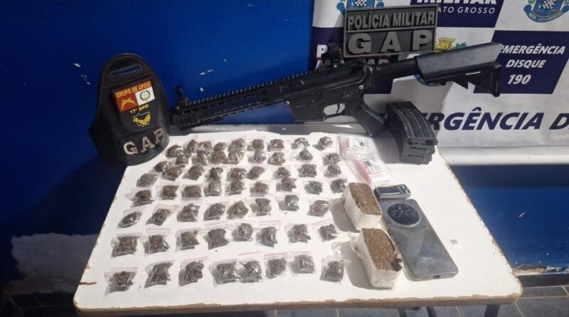 Policiais militares do 17º Batalhão prenderam um homem faccionado, de 20 anos, por tráfico de drogas, na noite desta quarta-feira (26.11), em Araputanga. Com o suspeito, foram apreendidos um simulacro de fuzil e 62 porções de maconha.