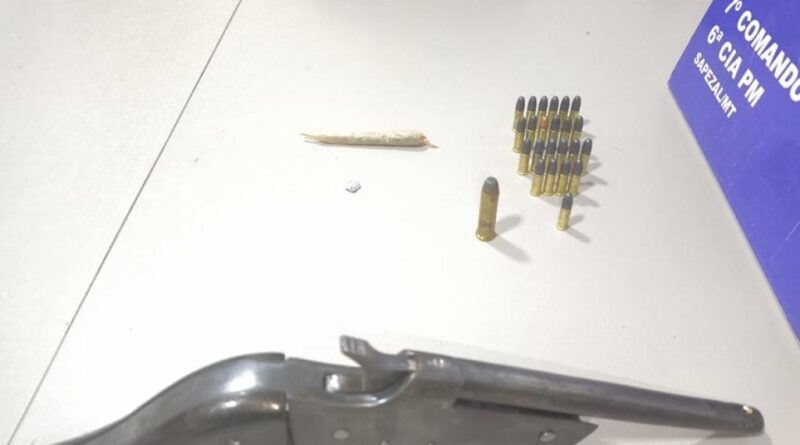 Um homem foi preso na noite deste sábado (3.1), suspeito por tentativa de feminicídio, em Sapezal (a 510 km de Cuiabá). Policiais militares da 6ª Companhia Independente apreenderam uma arma de fogo de fabricação artesanal, 24 munições de calibres diversos e um cigarro análogo à maconha.