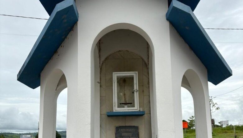 A imagem ficava exposta em uma pequena capela, dentro de uma caixa de vidro, localizada na entrada da cidade.
