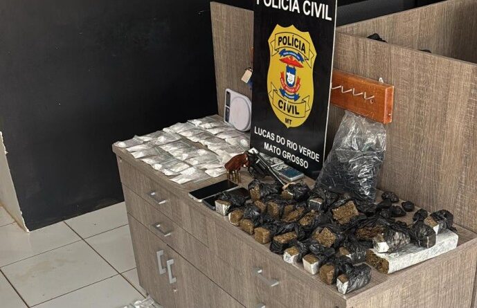 A ação da Delegacia Especializada de Roubos e Furtos (Derf) de Lucas do Rio Verde resultou também na apreensão de mais de 200 porções de substancias, entre maconha, cocaína e pasta base, uma arma fogo, munições, além de outros materiais.