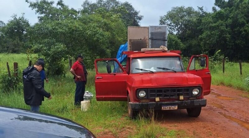 Foram iniciadas buscas veiculares e, na caçamba da caminhonete, foram localizadas munições de calibre 22 dentro de uma caixa e, em um compartimento de ferro oco, uma espingarda calibre 22, uma espingarda de pressão (aparentemente adaptada para calibre 22), munições calibre 38 e munições calibre 22.