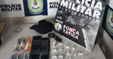 No interior da casa, foram localizadas outras 28 porções do mesmo entorpecente, embaladas e etiquetadas com figurinhas com inscrições ligadas a uma facção criminosa. Aos policiais, o suspeito confessou que a droga seria destinada à cidade de Barra do Bugres. O homem e o material apreendido foram entregues à delegacia.
