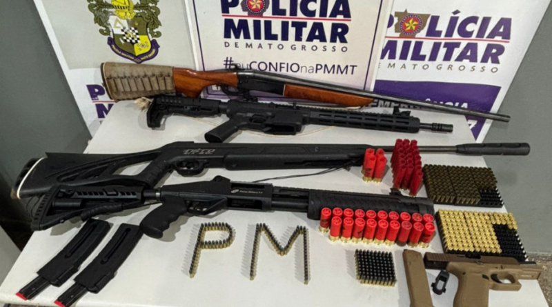 Equipes militares do 5º Batalhão apreenderam, nesta terça-feira (17.2), cinco armas de fogo e 470 munições de calibres diversos, durante abordagem na zona rural do município de Guiratinga (333 km de Cuiabá).
