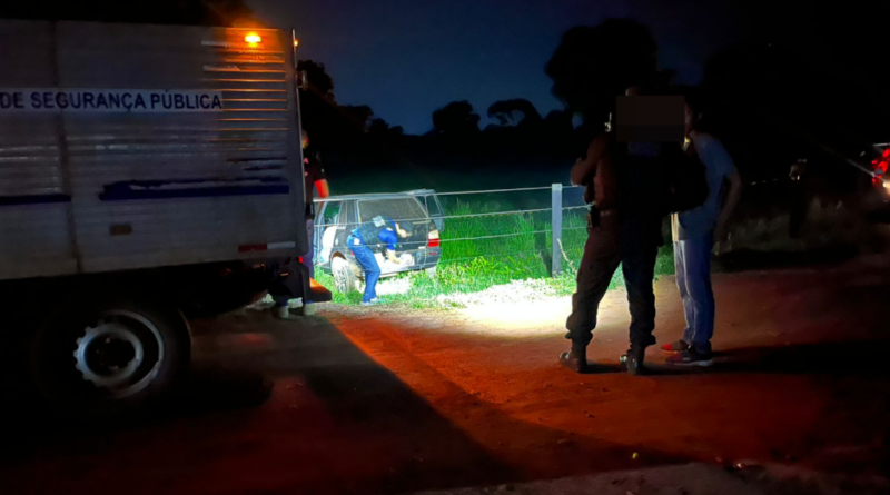 As equipes foram informadas, por agentes da inteligência, de que o suspeito teria sido visto conduzindo um veículo Fiat Uno, na região do bairro Rodeio, em alta velocidade. Em seguida, os policiais militares receberam novas informações de que o condutor do carro teria perdido o controle da direção, avançado contra uma cerca e parou em meio a um pasto.