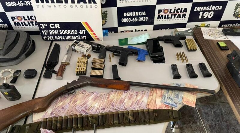 Policiais militares do 3º Comando Regional, prenderam na manhã desta terça-feira (9.12), quatros homens e apreenderam um adolescente, por envolvimento em um roubo a residência em Nova Ubiratã. Com o grupo foram encontradas cinco armas e 317 munições de diferentes calibres e mais de R$ 2,5 mil em dinheiro.