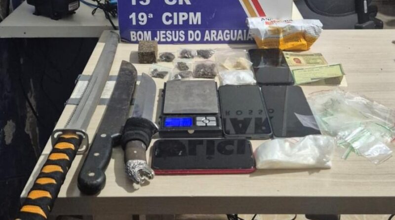 Policiais militares da 19ª Companhia Independente prenderam dois homens e apreenderam dois adolescentes, suspeitos por tráfico ilícito de drogas, na noite desta quarta-feira (10.12), no município de Bom Jesus do Araguaia (826 km de Cuiabá). Na ação, as equipes recolheram uma espada, duas facas, diversas porções de substância análogas à maconha e outros materiais para preparo e embalagem dos entorpecentes.