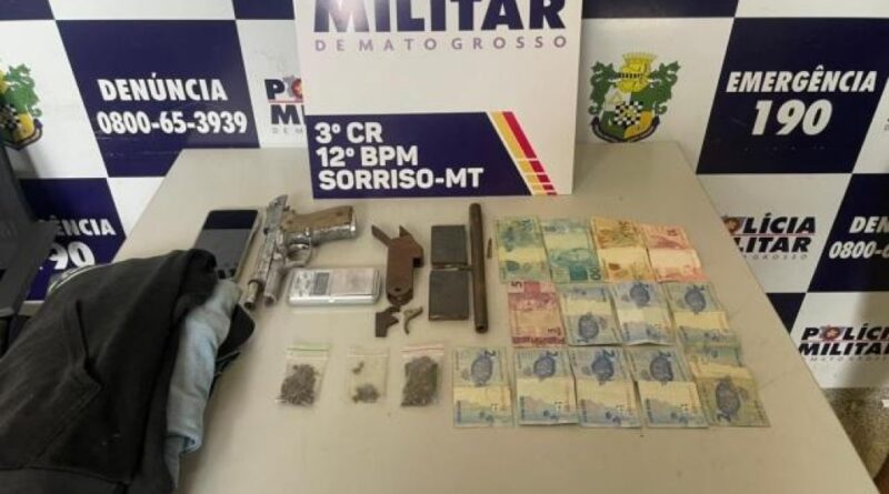 Ao ser abordado, o homem apresentou resistência, sendo detido em seguida. No local, as equipes apreenderam uma quantia em dinheiro, porções de maconha, uma pistola airsoft, além de uma munição e uma barra de ferro simulando ser arma de fogo.