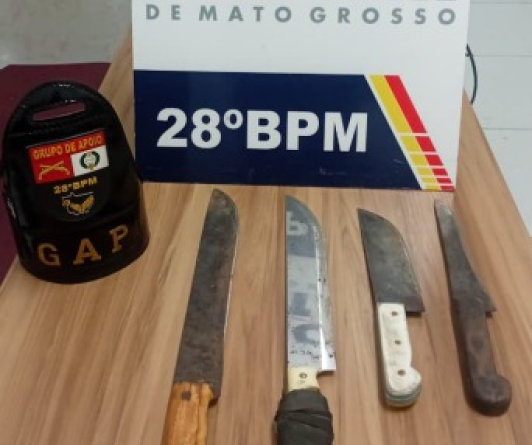 Com base nas informações, os militares iniciaram diligências em um assentamento próximo, onde localizaram o segundo envolvido em um barraco de lona. Durante a abordagem, ele apresentava sinais de embriaguez e chegou a empunhar um facão, sendo contido posteriormente pelos policiais.