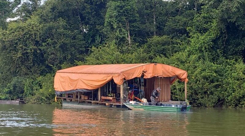 Os policiais militares receberam informações de que haveria balsas operando de forma irregular. Diante da denúncia, militares do Batalhão de Proteção Ambiental, 8º Batalhão, Força Tática do 2º, 9º CR e e a Agência Regional de Inteligência reforçaram o policiamento na região e flagraram uma estrutura fluvial de madeira, utilizada como apoio para a prática de garimpo ilegal.