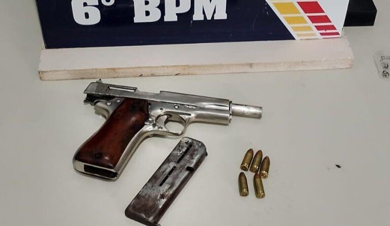 Policiais militares do 6º Batalhão prenderam um homem, de 30 anos, por porte ilegal de arma de fogo, nesta segunda-feira (8.12), em Cáceres. O suspeito foi preso em flagrante pela PM após tentar se esconder de uma abordagem policial com uma pistola e cinco munições.