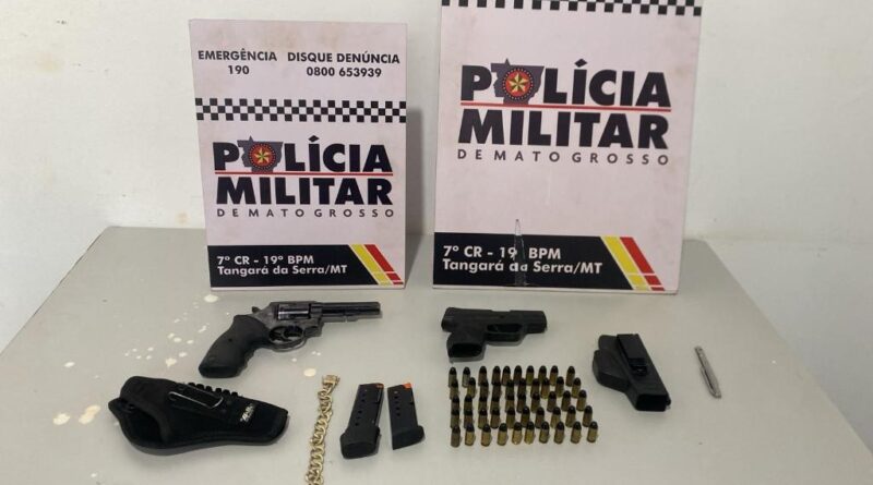 Policiais militares do 19º Batalhão prenderam um homem, de 32 anos, por porte ilegal de arma de fogo, na madrugada deste sábado (31.1), em Tangará da Serra. Com o suspeito, foram apreendidos um canivete, dois revólveres e 51 munições calibre .40.