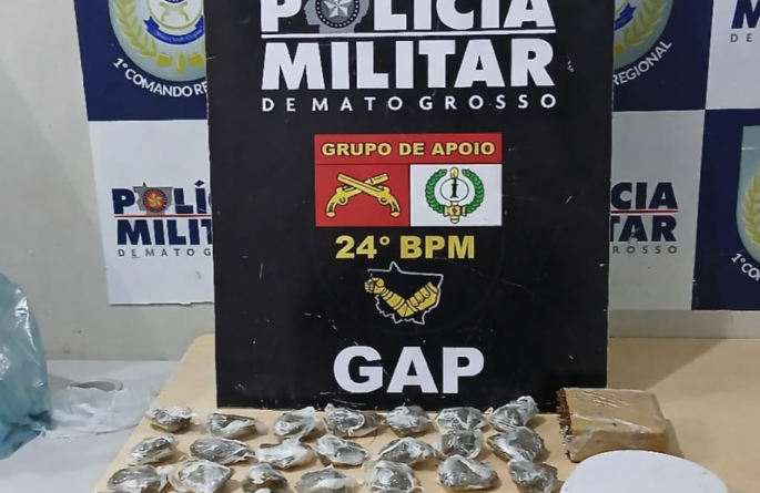 Policiais militares do 24º Batalhão da Polícia Militar prenderam, neste domingo (22.2), um homem de 20 anos por tráfico ilícito de drogas no bairro Pedra 90, em Cuiabá. Com o suspeito, foram apreendidas 39 porções de substância análoga à maconha, além de um tablete maior da mesma droga, uma porção de substância análoga à cocaína e uma balança de precisão.
