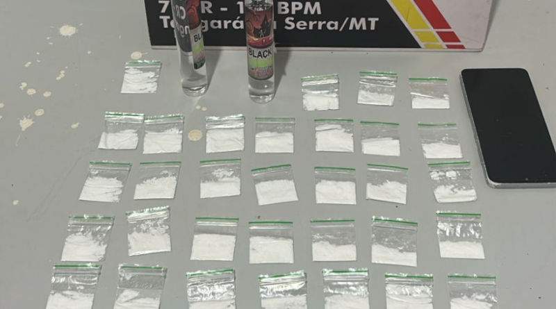 Policiais militares do 19º Batalhão prenderam um homem, de 29 anos, com 34 porções de substância análoga à cocaína e dois frascos de substância conhecida como lança-perfume, na madrugada desta terça-feira (17.3), em Tangará da Serra. O suspeito foi autuado em flagrante pelo crime de tráfico ilícito de drogas.