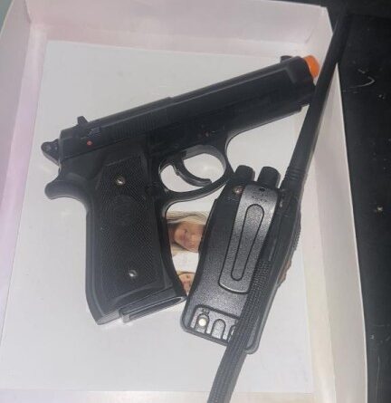 Ao ser abordado, os militares identificaram que se tratava de um simulacro de arma de fogo. Além disso, o suspeito portava um rádio comunicador na cintura. O homem foi detido em flagrante.