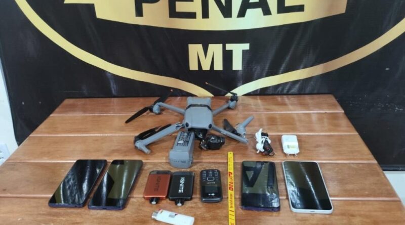 A Polícia Penal impediu a entrada de materiais proibidos levados por um drone, que sobrevoava a penitenciária Major PM Eldo de Sá Correia, em Rondonópolis, na manhã desta quinta-feira (13.11).
