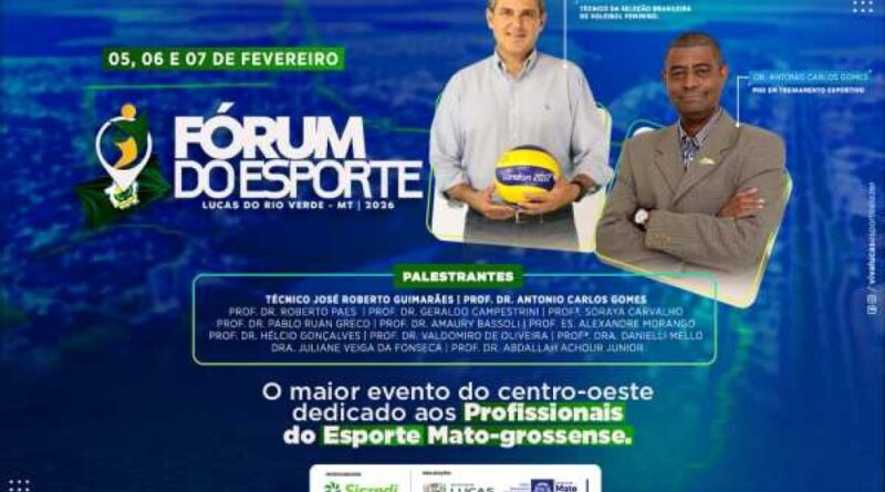 Um evento que vai marcar o universo esportivo, voltado para organização e metodologia do ensino esportivo para crianças e jovens, está programado para acontecer em Lucas do Rio Verde no mês de fevereiro, com a participação de profissionais da área. O 1º Fórum do Esporte de Lucas do Rio Verde acontecerá nos dias 5, 6 e 7 de fevereiro.